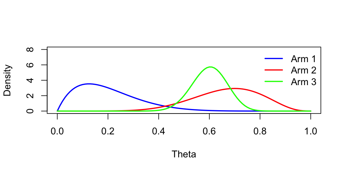 prob = bandit(x, n,ndraws=6)| \(\theta_1\) | \(\theta_2\) | \(\theta_3\) | |