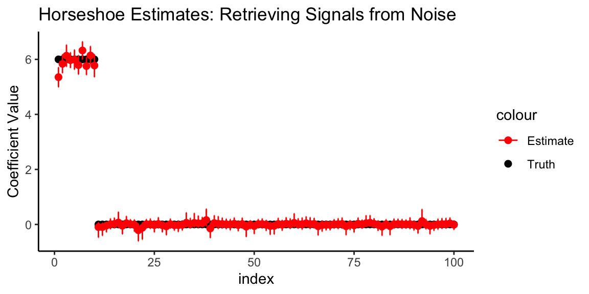 ggtitle("Horseshoe Estimates: Retrieving Signals from Noise")
