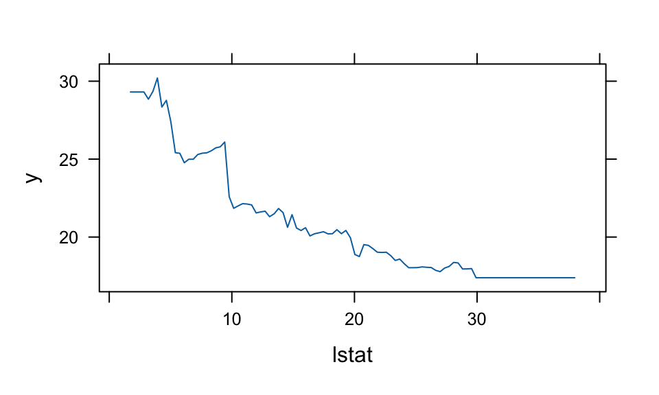 temp <- tree(medv ~ lstat, data = Boston, mindev = .0001)